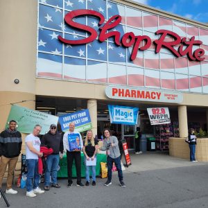 Photo, from left to right: WBPM Road Crewperson Blair Barrone, WBPM Mid-Day Host Bill Williams, CGHS President/CEO Ron Perez, ShopRite Manager Jon Gregory, CGHS Director of Development and Community Outreach Rebecca Warner, and WBPM Road Crewperson Andy Morales.