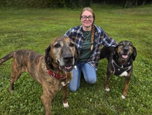 Picture: CGHS/SPCA Adoption Manager Jenn Maloney with Harley and Sammy.